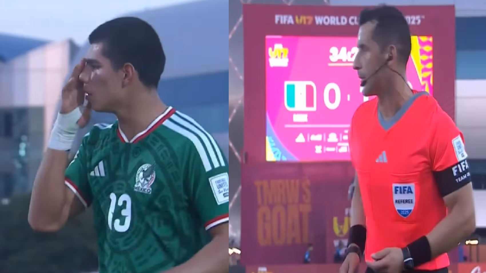 Al minuto 36 del primer tiempo, México Sub-17 tuvo un tiro libre a su favor, el cual buscaron enviar al área para conseguir el empate en el marcador. No obstante, en la disputa por el balón, se suscitó una falta que de inicio se pensó que podría favorecer a la Selección Nacional, algo que no ocurrió.