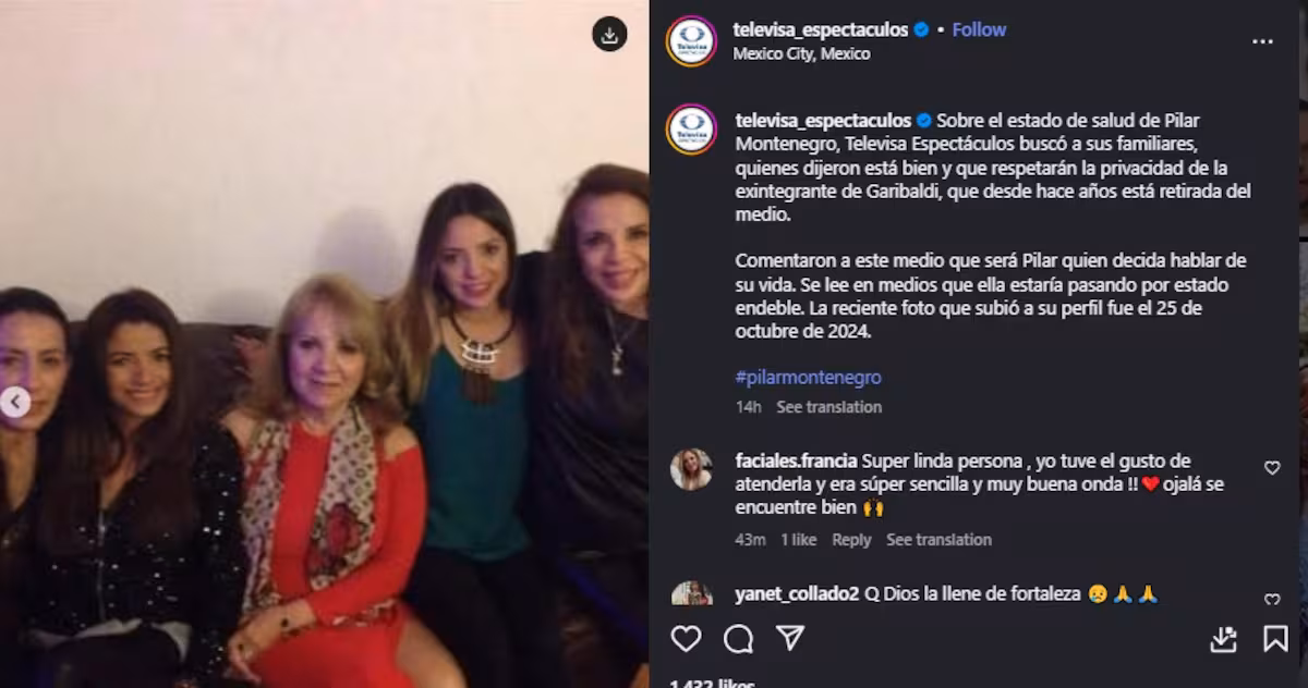 Finalmente, Televisa Espectáculos señaló que los familiares dijeron que Pilar Montenegro es la única que puede hablar de su vida privada. Por ello, pidieron no caer en especulaciones.