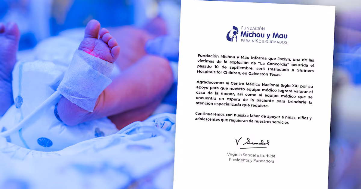 La Fundación Michou y Mau ha emitido un comunicado crucial sobre la salud de Jazlyn Azulet, la menor que sufrió quemaduras de tercer grado en la devastadora explosión de una pipa de gas LP en el Puente de La Concordia. Tras su traslado a Galveston, Texas, para recibir tratamiento especializado, se informa que Jazlyn fue intervenida quirúrgicamente, mientras se mantiene en un estado de salud calificado como “crítico estable”.