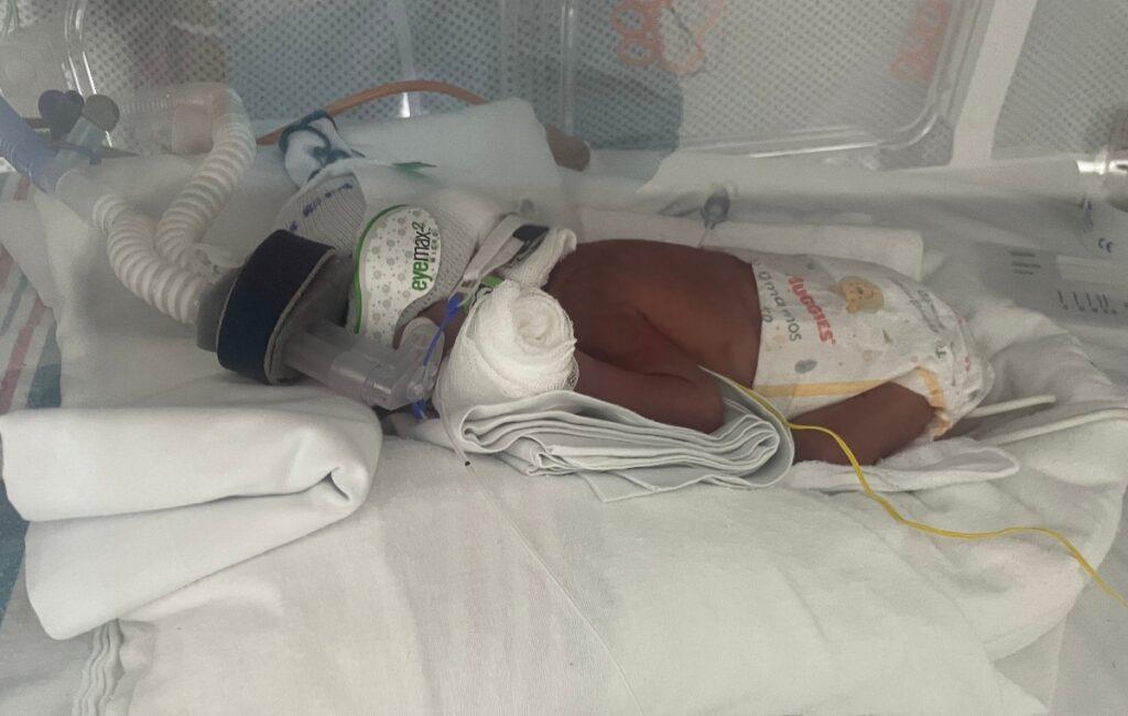 Gastón llegó al mundo con tan solo 950 gramos de peso y 35 centímetros de estatura. Desde ese instante, cada respiración ha sido una batalla. El pequeño permanece hospitalizado en una Unidad de Cuidados Intensivos Neonatales (UCIN), donde deberá pasar al menos tres meses para recibir atención especializada.